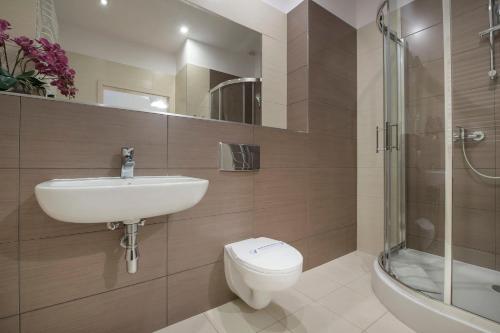 The apartments are decorated in simple, Scandinavian style. Each of them has a fridge, kettle, WiFi, a balcony and a bathroom with a shower.