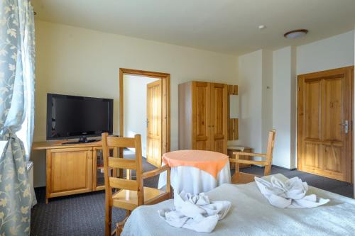 Hotel Świeradów坐落于希维拉杜夫-兹德鲁伊,距离死亡转弯有16公里,配备花园、免费私人停车位、露台和餐厅。这家舒适型酒店提供酒吧。住宿提供24小时前台、机场交通服务、客房服务以及免费WiFi。