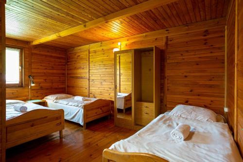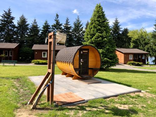 这家度假村的客房配有衣柜、平板电视、私人浴室、床上用品和毛巾。AB Domki całoroczne nad jeziorem的部分房间享有湖景。每间客房都拥有电热水壶。
