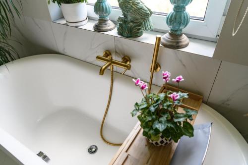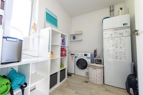 这家度假屋配有2间卧室、起居室、带冰箱和咖啡机的设施齐全的厨房以及2间带淋浴设施和吹风机的浴室。这家度假屋还配备平板电视、休息区、洗衣机以及2间带浴缸的浴室。