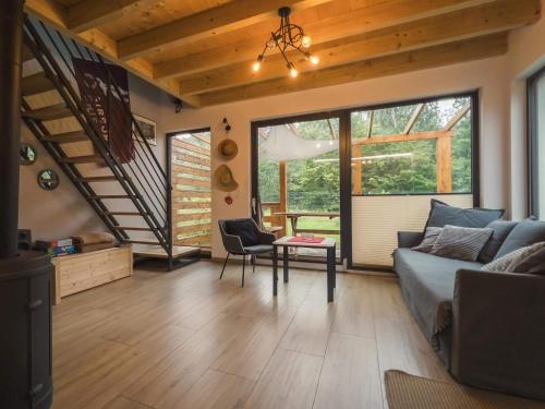 这家度假屋提供露台,享有花园景,拥有2间卧室、起居室、平板电视、带冰箱和洗碗机的设施齐全的小厨房以及1间带热水浴池的浴室。这家度假屋也配备休息区和1间浴室。