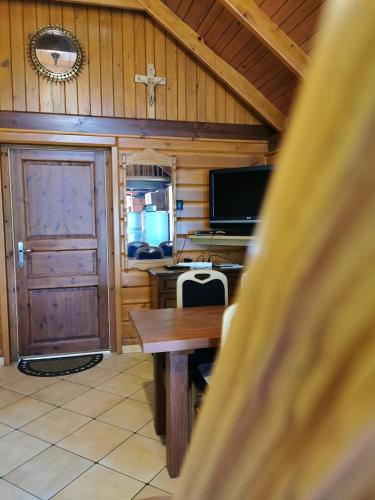 Agroturystyka w ogrodach位于萨诺克,享有山景,配备花园。内部提供私人停车位。