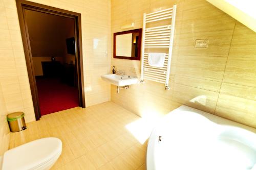 餐厅配有空调,供应传统的波兰和匈牙利美食以及新鲜出炉的比萨饼。宾馆还拥有2间带多媒体设备的会议室和多功能厅,最多可容纳120人。