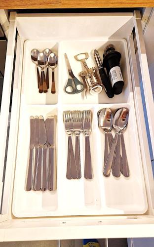 这家公寓配有2间卧室、起居室、带冰箱和咖啡机的设施齐全的小厨房以及1间带浴缸或淋浴设施和免费洗浴用品的浴室。这家公寓还配备平板电视以及1间带吹风机的浴室。