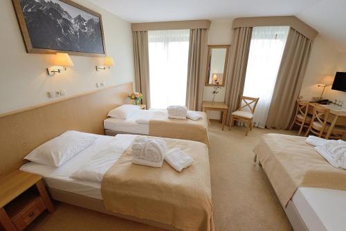 Hotel Alpejski is inspired by the Alps regional architecture and offers bright rooms with wooden furniture and free Wi-Fi. Guests can use the swimming pool, the fitness centre, and the saunas free of charge.
