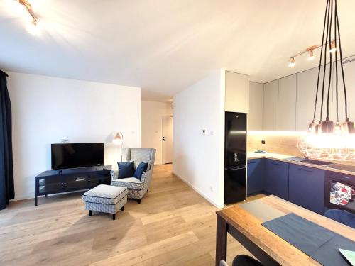 这家公寓配有1间卧室、起居室、带冰箱和咖啡机的设施齐全的小厨房以及1间带淋浴设施和吹风机的浴室。这家公寓也为客人提供1间浴室。