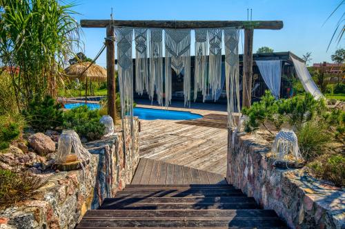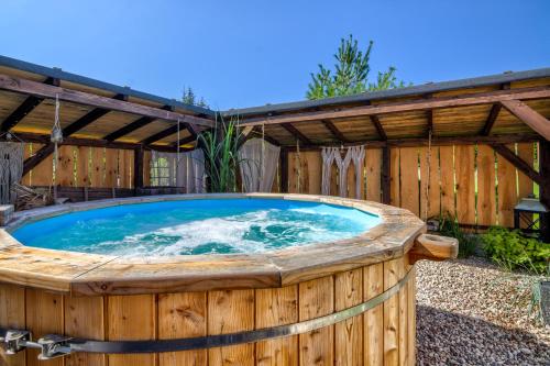 Pod Mazurskim Niebem boho位于佩茨基,享有池景,提供季节性室外泳池、花园、露台和烧烤设施。内部提供私人停车位。