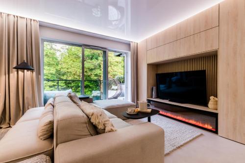 Apartament nad jeziorem Drwęckim Turystyczna # 17享有河景,提供阳台和电热水壶,距离奥尔什丁公交站约有43公里。这家海滨住宿的客人可以使用露台、免费私人停车位和免费WiFi。