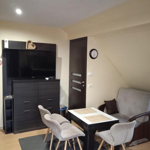 房间铺有镶木地板,配有带冰箱的设施齐全的厨房、用餐区、平板电视以及带淋浴设施和免费洗浴用品的私人浴室。住宿还配备烤箱、微波炉、炉灶和电热水壶。