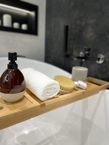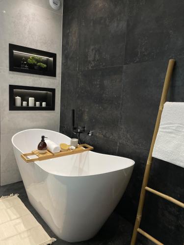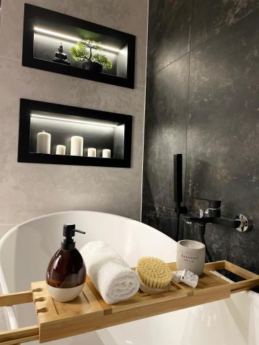 这家公寓提供露台,享有市景,拥有1间卧室、起居室、平板电视、带冰箱和洗碗机的设施齐全的小厨房以及1间带淋浴设施的浴室。1间浴室配有浴缸,也配有吹风机,提供毛巾和床上用品。