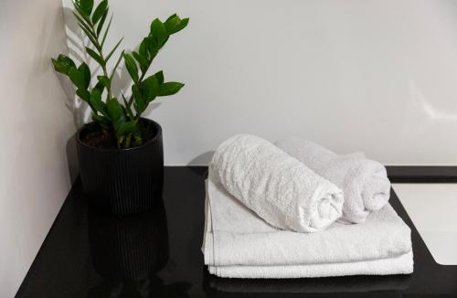 这家空调公寓配有1间卧室、起居室、带冰箱和咖啡机的设施齐全的厨房以及1间带淋浴设施和免费洗浴用品的浴室。这家公寓还配备平板电视以及1间带吹风机的浴室。