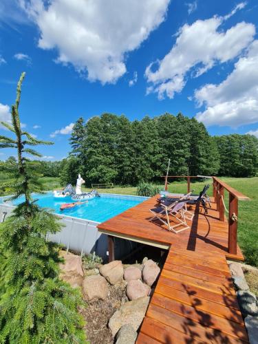 SOBIESKI PTASI RAJ位于Mońki,提供带免费WiFi的池景客房,配有季节性室外泳池、花园和共用休息室。这家度假屋配备免费私人停车位。客人可以在周边地区体验徒步、垂钓和桌球等活动。