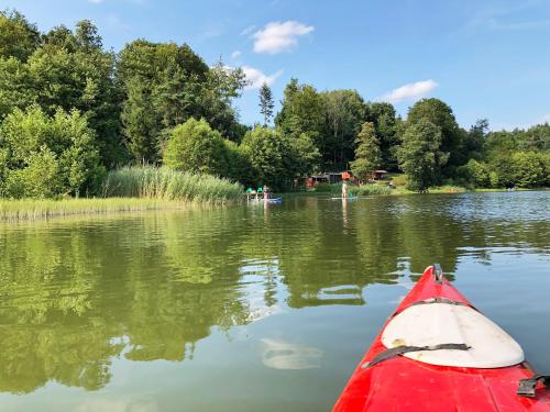 Potęgówka wege Kaszuby的客人可以在Linia及周边地区体验各种活动,如划独木舟和骑行。