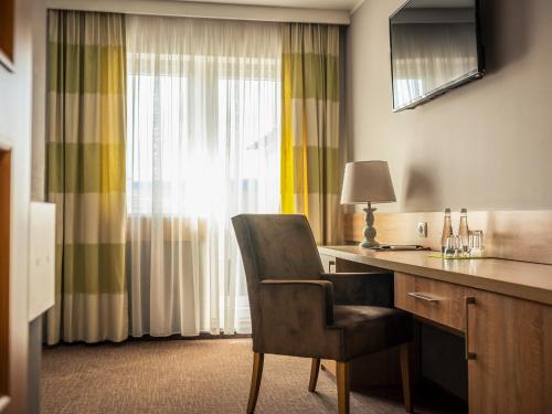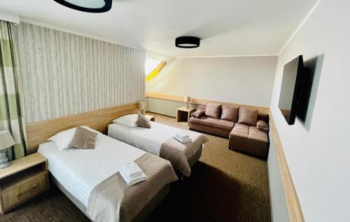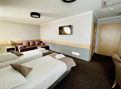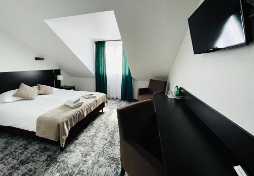 布置典雅的客房以暖色调的装饰,均配有卫星平板电视和带淋浴的私人浴室。Hotel Mużakowski酒店提供自行车出租和自行车寄存处。