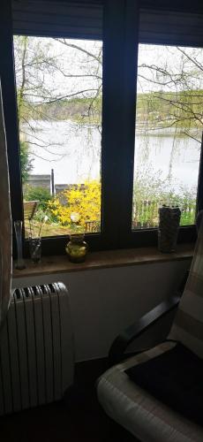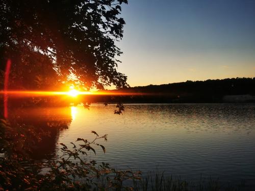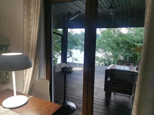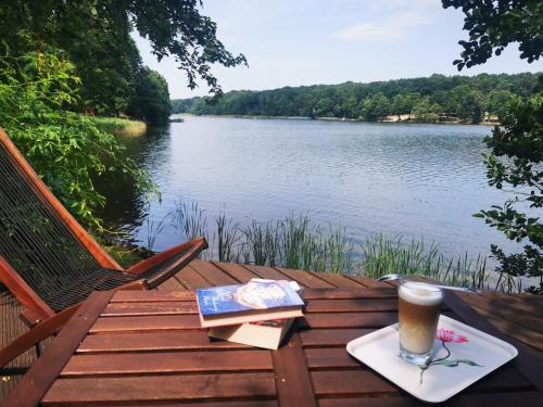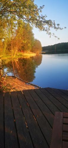 Domek nad jeziorem位于Łąck,配备带免费WiFi的湖景客房,配有花园、露台和烧烤设施。入住这家山林小屋的客人可以使用阳台。