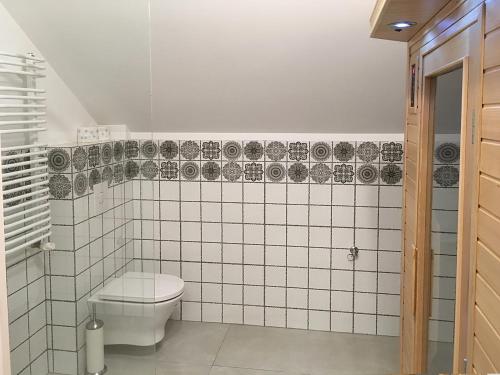 Malinowe Wzgórze domki 90 m2 z sauną i balią的客人可以使用桑拿浴室。