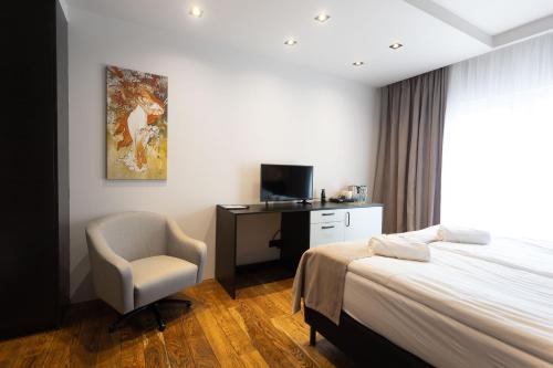 Air-conditioned rooms here will provide you with an LCD TV, as well as a safety deposit box and a minibar. Private bathrooms come with a bath or shower.