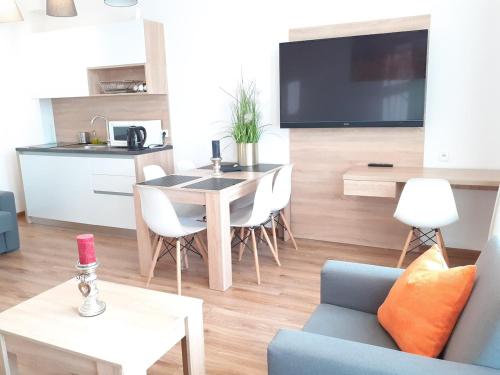 这家1卧室公寓提供带平板电视的起居室、设施齐全的小厨房和1间浴室。这家公寓也配备1间浴室。