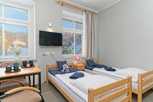 这家酒店的客房配备衣柜和平板电视。每间客房都配备电热水壶以及带淋浴设施和吹风机的私人浴室。部分客房配备配有带冰箱的小厨房。Ośrodek WOJKÓW Kowary koło Karpacza的客房拥有床上用品和毛巾。