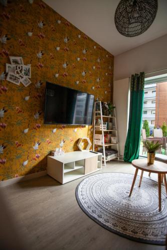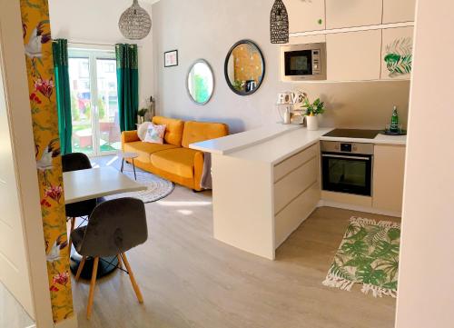 这家公寓提供露台,享有花园景,拥有1间卧室、起居室、平板电视、带冰箱和洗碗机的设施齐全的厨房以及1间带浴缸的浴室。这家公寓还配备休息区、洗衣机以及1间带吹风机的浴室。