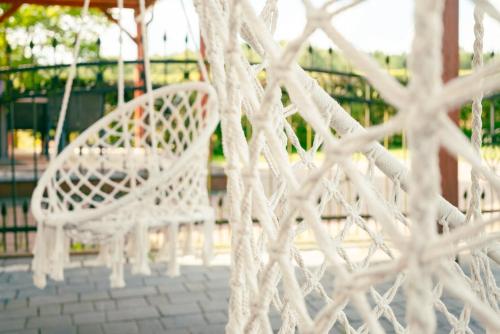 Dom na Kaszubach的客人可以使用桑拿浴室和热水浴池。这家住宿配备儿童游乐场和烧烤设施。客人可以在附近体验徒步。