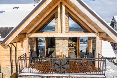 APARTAMENT No 1 MOUNTAIN VIEV Sauna Priv okolice Zakopane Czorsztyn Kluszkowce享有湖景,配备阳台和咖啡机,距离涅茲卡城堡约有16公里。这家小木屋配有免费私人停车位。客人可以在周边地区体验徒步、滑雪和骑行等活动。