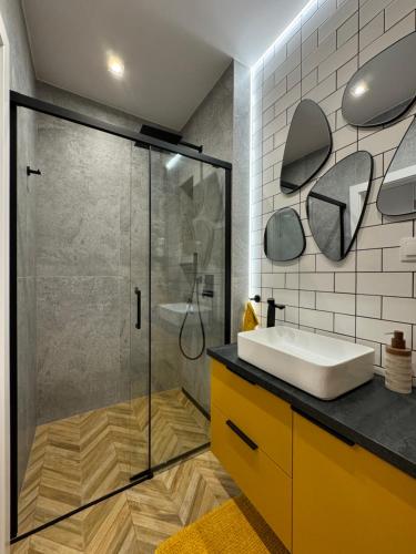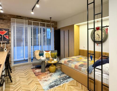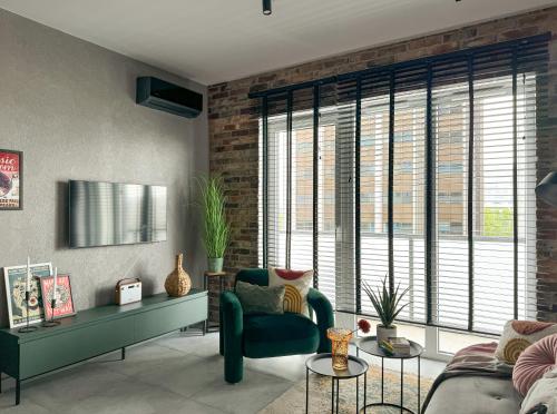 LaKru Apartments Zabrska 15 Katowice提供花园、露台以及带庭院和免费WiFi的空调住宿,距离卡托维兹中央站有13分钟步行路程。内部提供私人停车位。