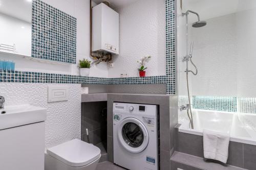这家1卧室公寓配有起居室、平板电视、带冰箱和洗碗机的设施齐全的厨房以及1间带免费洗浴用品的浴室。1间浴室配有浴缸,也配备吹风机,提供毛巾和床上用品。