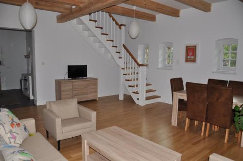 这家2卧室度假屋配备带平板电视的起居室、设施齐全的厨房和2间浴室。这家度假屋也提供2间浴室。