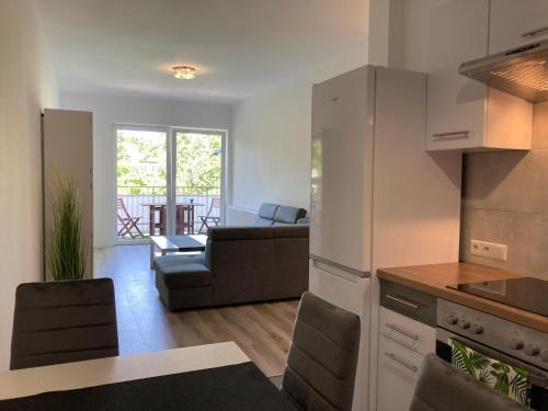 这家公寓提供阳台,享有花园景,拥有1间卧室、起居室、平板电视、带冰箱和烤箱的设施齐全的厨房以及1间带淋浴设施的浴室。这家公寓也配备1间浴室。