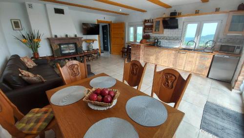 这家度假屋提供露台,享有山景,拥有2间卧室、起居室、平板电视、带冰箱和洗碗机的设施齐全的厨房以及2间带淋浴设施的浴室。这家度假屋也拥有休息区和2间浴室。
