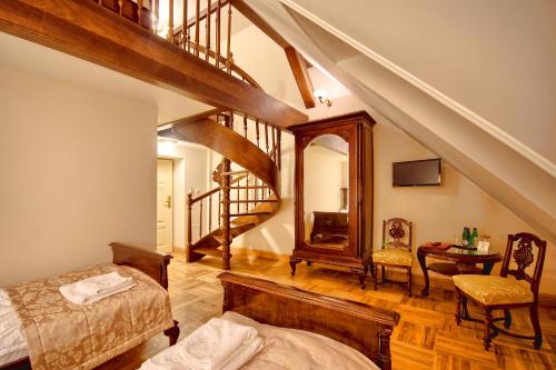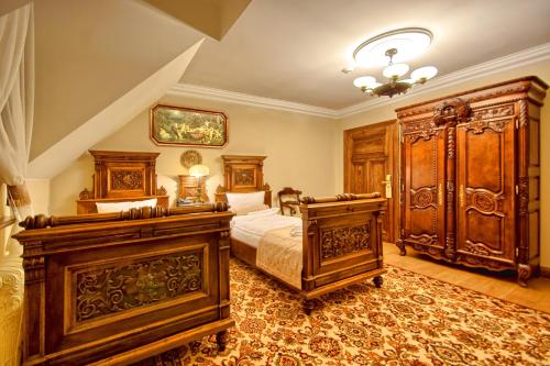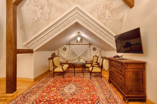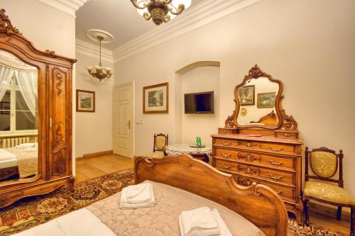 All the rooms and apartments of Pałac Tłokinia and Pałacowa Oficyna are traditionally decorated, in a baroque, palace style. They all have a flat-screen TV with satellite channels and a bathroom with a shower.