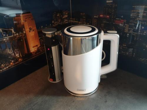 这家空调公寓配有1间卧室、起居室、带冰箱和咖啡机的设施齐全的厨房以及1间带淋浴设施和吹风机的浴室。这家公寓也配备休息区和1间浴室。