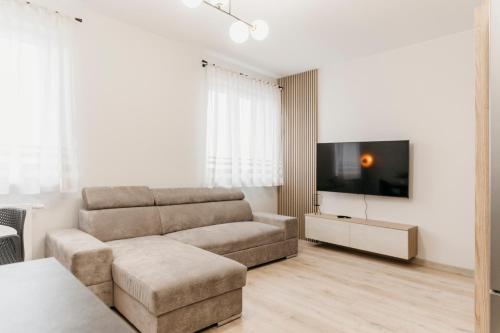 这家1卧室公寓配备起居室、平板电视、带冰箱和洗碗机的设施齐全的小厨房以及1间带淋浴设施的浴室。这家公寓也提供休息区和1间浴室。