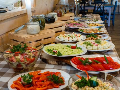 Wakacyjna Osada坐落于西波美拉尼亚省的杰泽扎尼,靠近亚罗斯瓦维奇海滩(Jarosławiec Beach),配备免费WiFi和免费私人停车位。客人可以使用桑拿浴室。