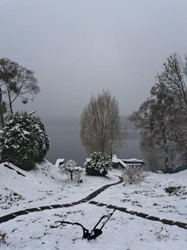 这家度假屋提供露台,享有湖景,配有1间卧室、起居室、平板电视、带冰箱和洗碗机的设施齐全的厨房以及1间带浴缸的浴室。这家度假屋还提供休息区、洗衣机以及1间带吹风机的浴室。