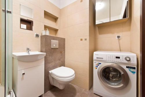 这家公寓提供阳台,享有市景,拥有1间卧室、起居室、平板电视、带冰箱和洗碗机的设施齐全的小厨房以及1间带淋浴设施的浴室。这家公寓还提供休息区、洗衣机以及1间带免费洗浴用品的浴室。