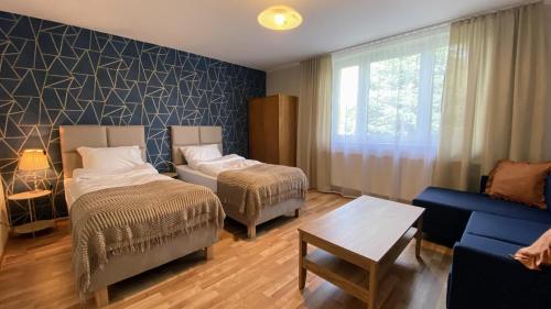 Siedlisko pod Kasztanem坐落于加尔沃林,提供免费自行车、花园和共用休息室。这家住宿的客人可以使用露台、桌球台、免费私人停车位和免费WiFi。