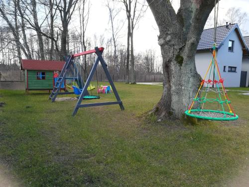 Domki Dębowy Zakątek位于波美拉尼亚省的德布吉,距离登基海滩(Dębki Beach)有不到一公里,提供免费WiFi、儿童游乐场、花园和免费私人停车位。