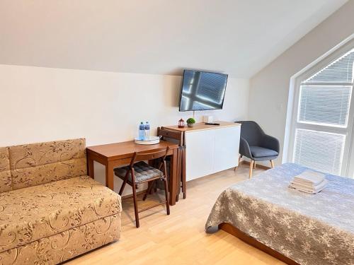 房间均配有空调、带用餐区的设施齐全的厨房、平板电视以及带淋浴设施和吹风机的私人浴室。住宿还提供冰箱、炉灶、咖啡机和电热水壶。