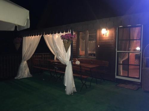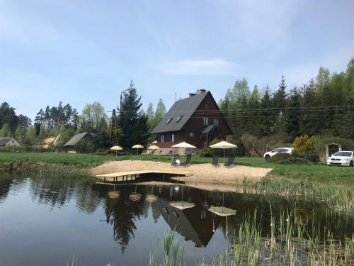 Dom nad Wodą坐落于Dawia,提供私家海滩、水上运动设施和烧烤设施。这家度假屋配备免费私人停车位和共用厨房。