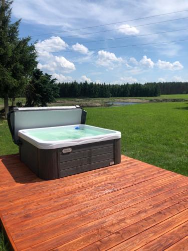 这家度假屋提供热水浴池。经过一天的徒步、垂钓或骑行之后,客人可以在花园内或共用休息室放松身心。