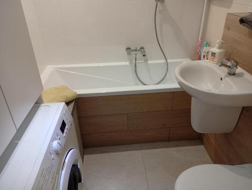 这家公寓配备游戏机,提供带冰箱、烤箱和微波炉的厨房、带休息区和用餐区的起居室、1间卧室以及1间带淋浴设施和浴缸的浴室。这家公寓还提供平板电视以及1间带免费洗浴用品的浴室。