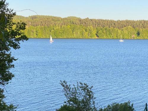这家度假屋享有湖景,配备露台,配有5间卧室、起居室、卫星频道平板电视、设施齐全的厨房以及2间带淋浴设施和浴缸的浴室。2间浴室提供吹风机。