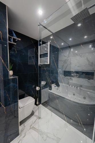 这家公寓享有市景,提供阳台,配有1间卧室、起居室、有线频道平板电视、设施齐全的小厨房以及1间带淋浴设施和热水浴池的浴室。1间浴室配有浴缸,也提供吹风机,提供毛巾和床上用品。