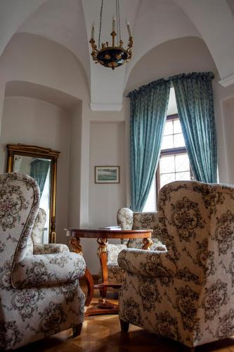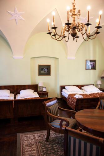 Zamek w Baranowie酒店的客房空间宽敞,享有古典的装饰,设有高高的吊扇。每间均设有带淋浴的私人浴室、休息区和卫星电视。