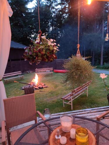 Ośrodek leśny Rajsko w Zapuście位于Zapusta,享有花园景,提供餐厅、共用厨房、酒吧、花园、按季节开放的室外泳池和露台。住宿提供免费WiFi,内部提供私人停车位。