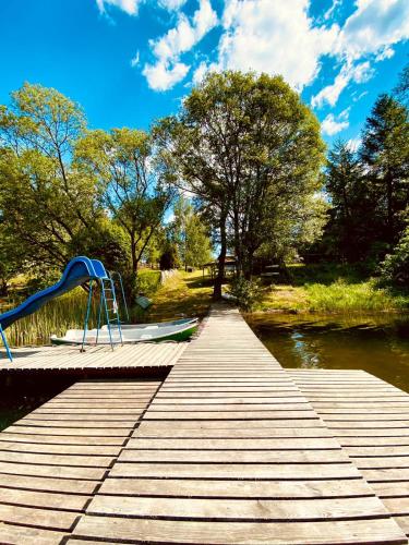 Tatarak domki na mazurach nad jeziorem Wałpusz - domek nr 1享有花园景,配备花园、私家海滩和烧烤设施,距离Townhall of Mragowo约有40公里。这家公寓配有免费私人停车位。客人可以在周边地区体验划独木舟和骑行等活动。