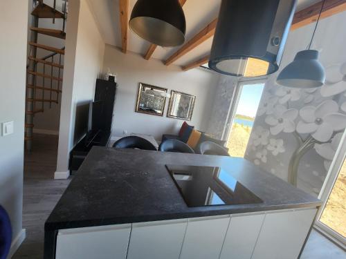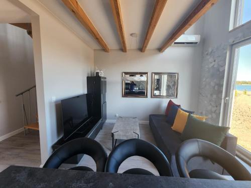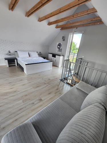 domek nad jeziorem坐落于Kunice,配有空调客房和阳台。内部提供私人停车位。