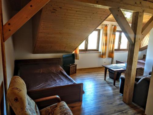 房间配有带冰箱和电热水壶的设施齐全的小厨房、平板电视以及带淋浴设施的私人浴室。